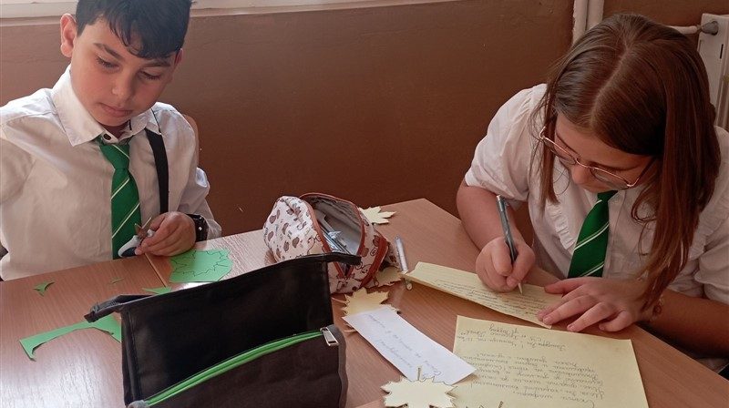 Есенните листа с посланията изработиха деца от СУ „Христо Ботев“.