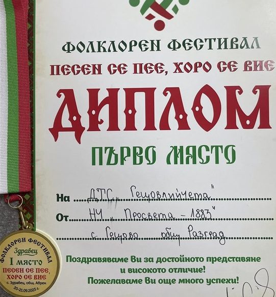 С наградата „Най-атрактивна група“ и Първо място за цялостно представяне, се завърнаха талантите от Детския танцов състав „Гецовлийчета“ от Националния фолклорен фестивал „Песен се пее, хоро се вие“ в село Здравец, община Аврен. На сцената – пред публика и жури – бяха 22 деца на възраст от 4 до 14 години.