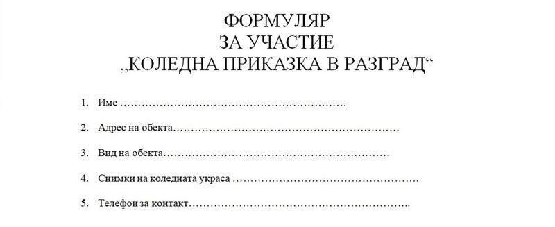 Право на участие имат собствениците на номинираните сгради – граждани, навършили 18-годишна възраст и организации. Те трябва да изпратят до 3 снимки на украсената сграда на ел. поща kultura@razgrad.bg заедно с попълнен формуляр по образец.