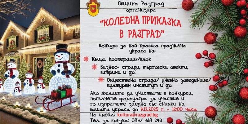 Започва второто издание на конкурса за коледна украса под надслов „Коледна приказка в Разград“, съобщиха от пресслужбата на местната администрация.
