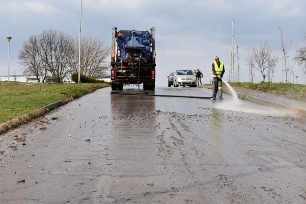Първите участъци, които са изметени и измити в края на миналата седмица, са ул. „Търговищко шосе“ и част от бул. „Априлско въстание“ – източно от ул. „Перистър“.