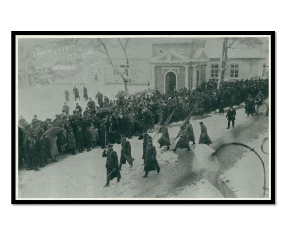 Манифестация по повод Освобождението на Разград с офицери и опълченци. Геро Василев – след военните. Януари 1928 г.