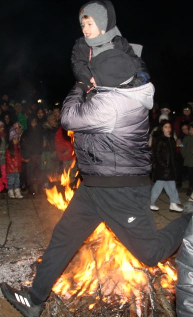 Както си му е редът, беше накладен голям огън и при затихването му множество от присъстващите – малки и големи, прескачаха огъня за здраве и изгонване на „злите духове“. Някои родители дори скачаха с малките си деца на раменете. Хората, заедно с кукерите, се включиха в народните хора, които се играеха около огъня. Имаше и „хамкане с халва и сладки, в което се надпреварваха 6-7 годишни деца кой пръв да захаме халвичката.