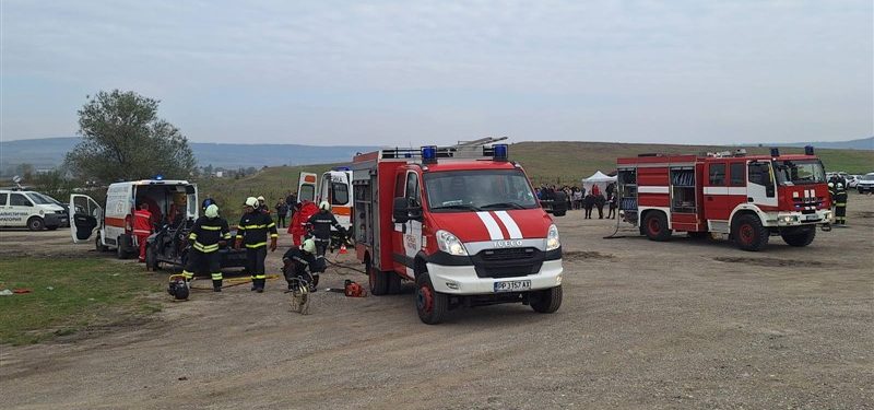 На кръговото кръстовище до село Трапище днес стана „тежка катастрофа“, а пожарникари, спасители, полицаи, медици, доброволци на БЧК тренираха как се спасяват пострадали.