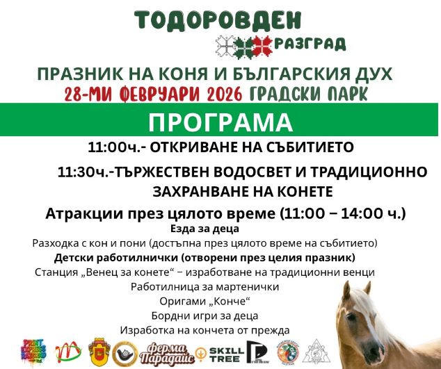 Програмата ще стартира с тържествен водосвет и традиционно захранване на конете. Ще има най- различни атракции – езда за деца, детски работилнички, изработване на традиционни венци, мартеници, оригами „Конче“, бордни игри и други.