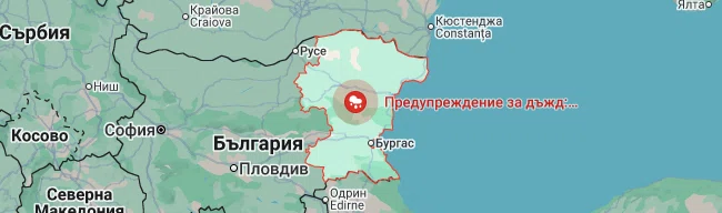 Предупреждението важи за областите Шумен, Търговище, Разград, Силистра, Добрич, Варна, Бургас и Ямбол.