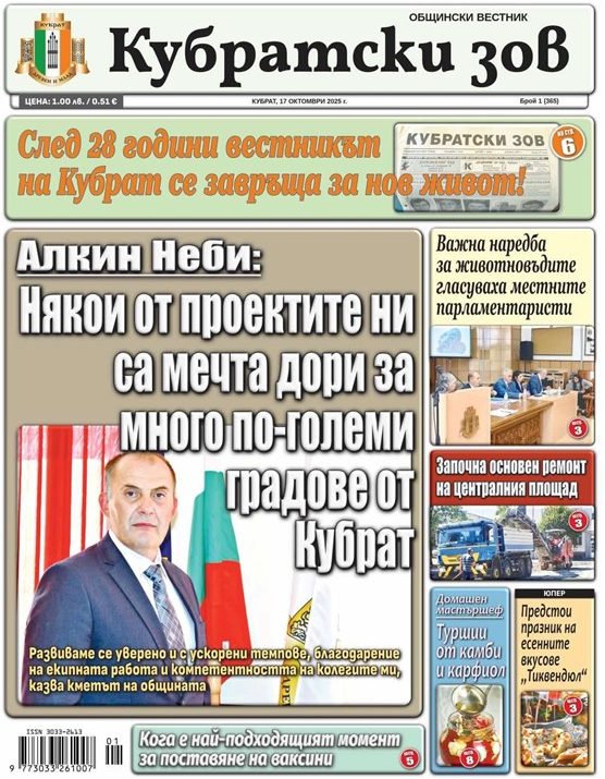 След близо три десетилетия прекъсване, общинският вестник „Кубратски зов“ отново ще бъде в ръцете на своите читатели, съобщиха от пресцентъра на местната администрация.